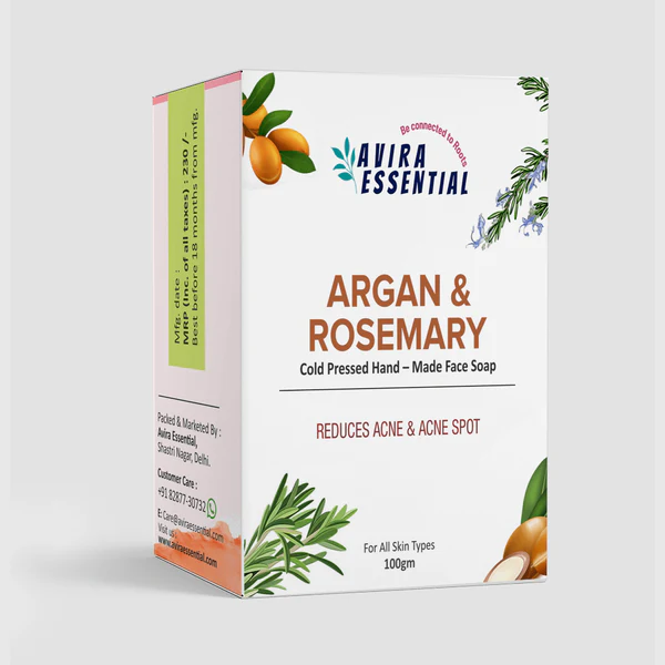 Argan and Rosemary handmade soap is boon for Acne Prone and oily skin. Our Handmade Cold Pressed Face Soap can run up to 40 days and can be use as bathing soap as well. This organic handmade soap has antibacterial, anti-fungal, and antiviral properties, which gently cleanses the skin, regulates sebum, and calms acne-prone skin.