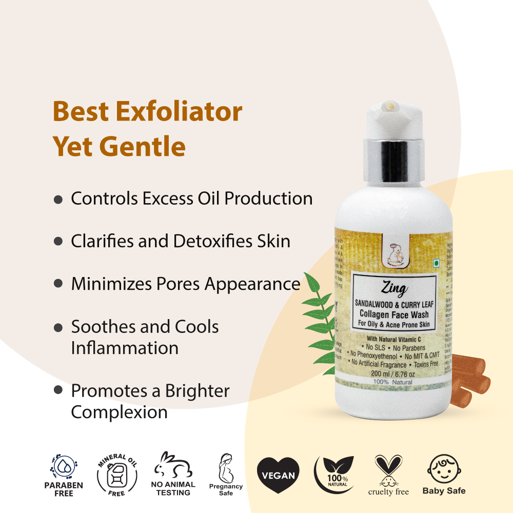 BBO Zing Collagen Sandalwood Face wash with Curry Leaf & Vit. C for Oily/acne prone Skin FaceWash