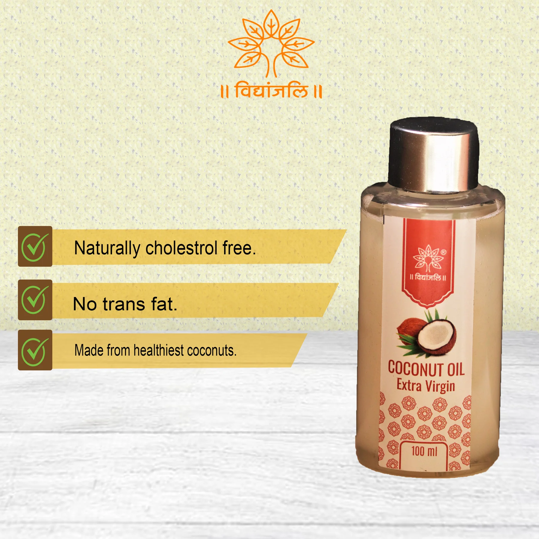 Vidhyanjali’s cold-pressed (rotary pressed) oil is processed by using the best-selected coconuts (healthiest) at a lower temperature that does not alter the properties of the oil content than expeller-pressed or solvent extracted oil. Cold pressed oils to retain all their flavor, aroma, and nutritional value, making these oils great for cooking and skin care requirements. They contain no trans fatty acids and are naturally cholesterol-free.