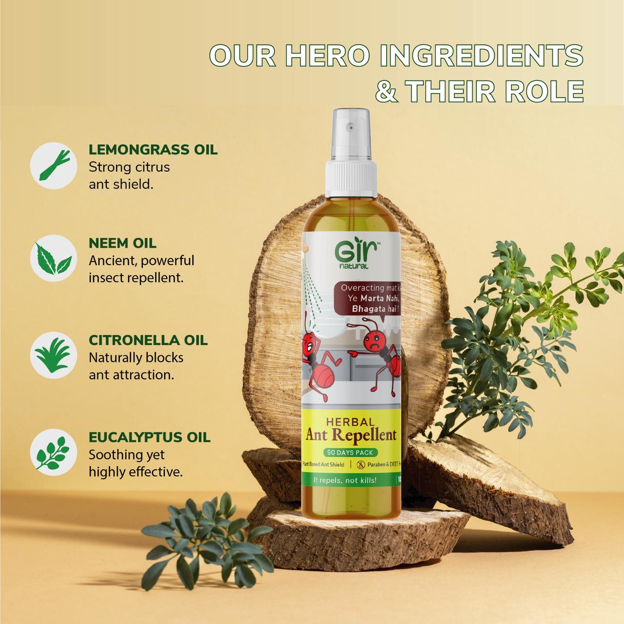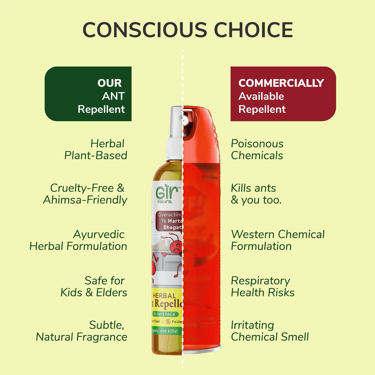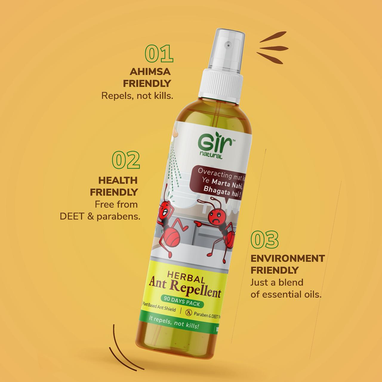 Made with pure natural essential oils – gently repels ants without harming them 🌿 Non-toxic, safe for home, kids, and pets. Claims: 🌿 No Added Fragrance | 🚫 No Alcohol / DEET | 🚫 No Chemicals | 🐰 Cruelty-Free | Jain Ahinsak Product